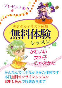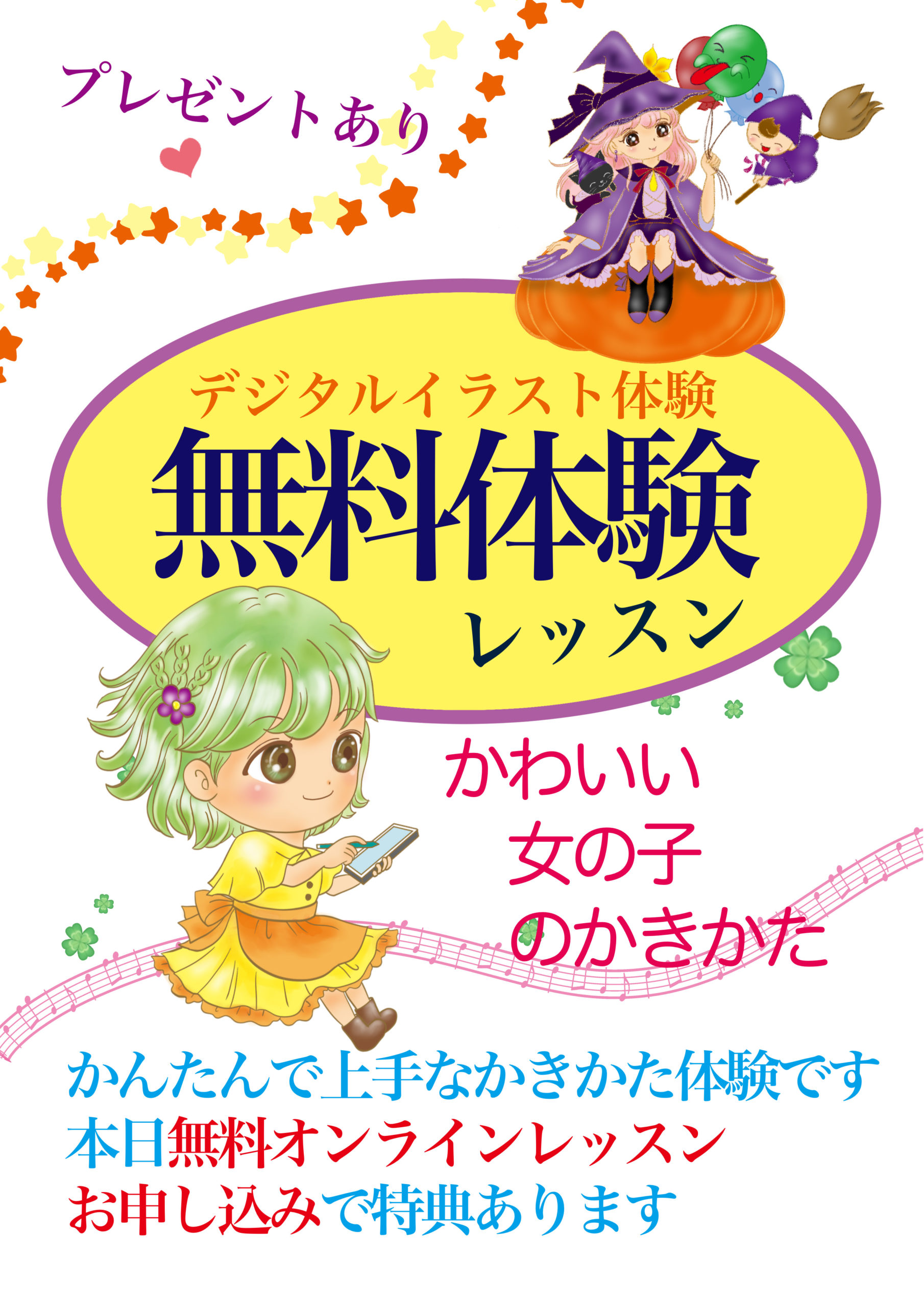 にて行われますイベントに参加します!!私は無料でイラスト教室を行いますのでお気軽にお越しください♡当日オンライン体験レッスンにお申し込みいただくと特典もございます。参加者にはプレゼントもあります。